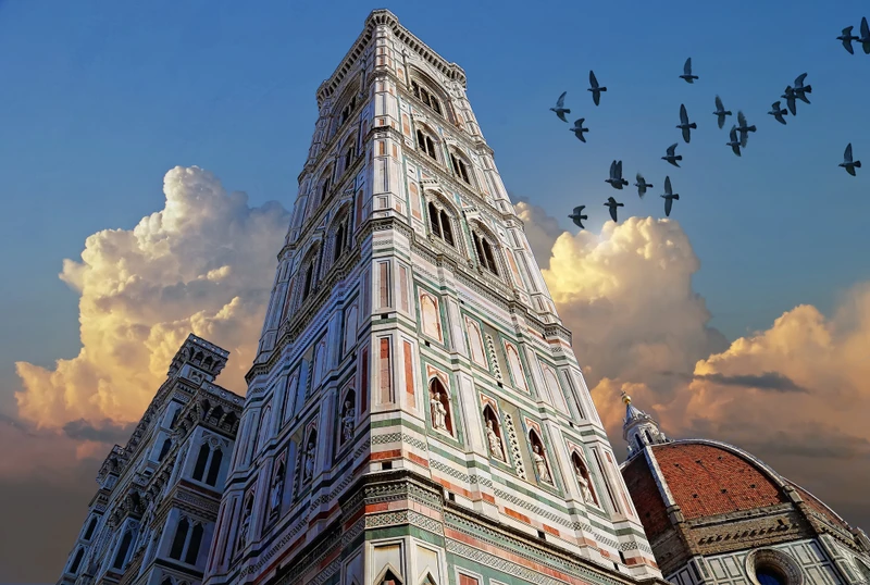 Рассмотрите колокольню Джотто и баптистерий святого Иоанна с легендарными Золотыми...