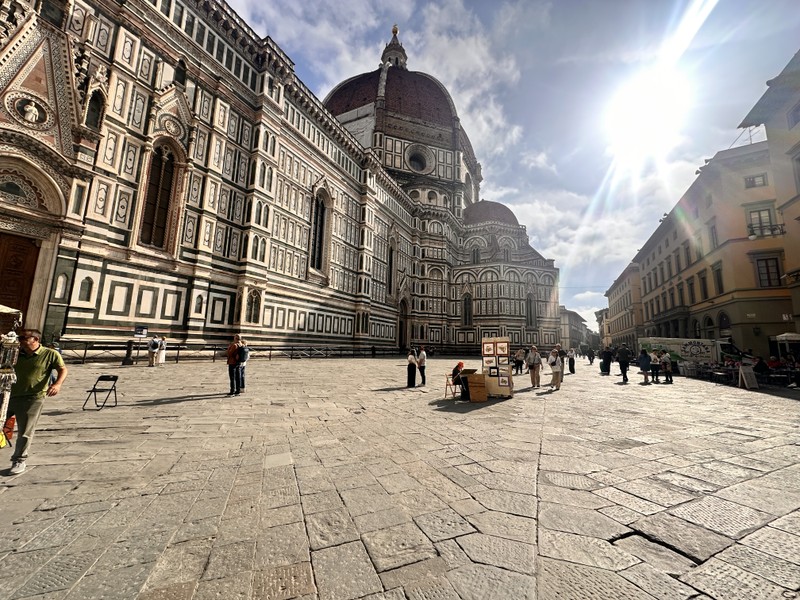 Площадь Дуомо и Кафедральный собор Санта-Мария-дель-Фьоре — грандиозный храм с легендарным куполом Брунеллески и фресками Вазари