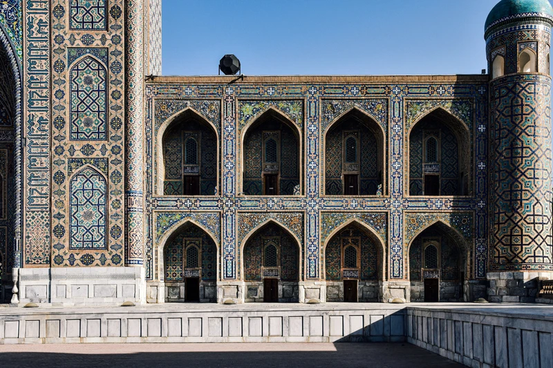 Главная площадь Старого города Хазрати Имам — вы увидите постройки разных периодов: медресе 16 века и мечети с голубыми куполами. Гид объяснит, почему площадь так называется и где по легенде...