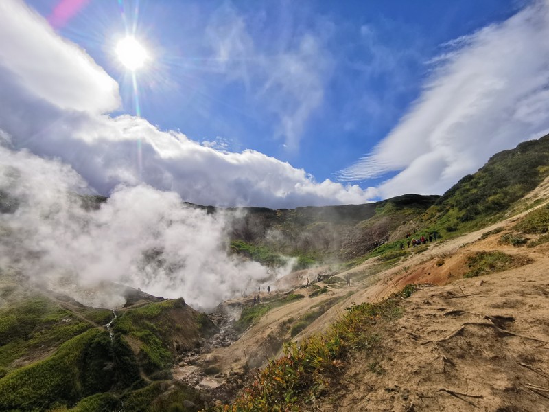 Активное поле пыхтящих разнообразных фумарол с вырывающимися струями раскаленного пара ждут любопытного путешественника, чтоб приоткрыть завесу тайны той необузданной энергии находящейся под вашими ногами на Камчатской...